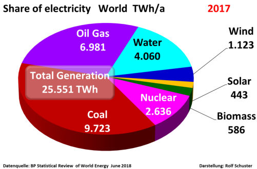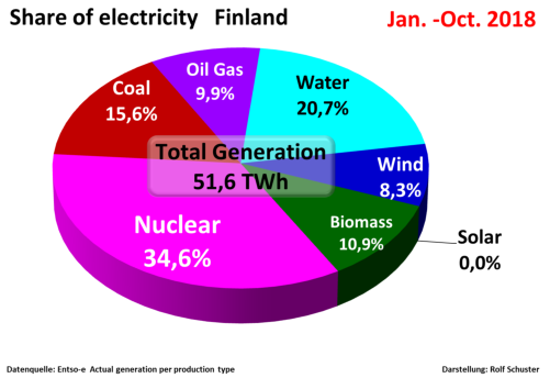 Kohle, Öl und Gas. Kernenergie hat in Länder wie Frankreich und Finnland einen hohen Anteil daran.